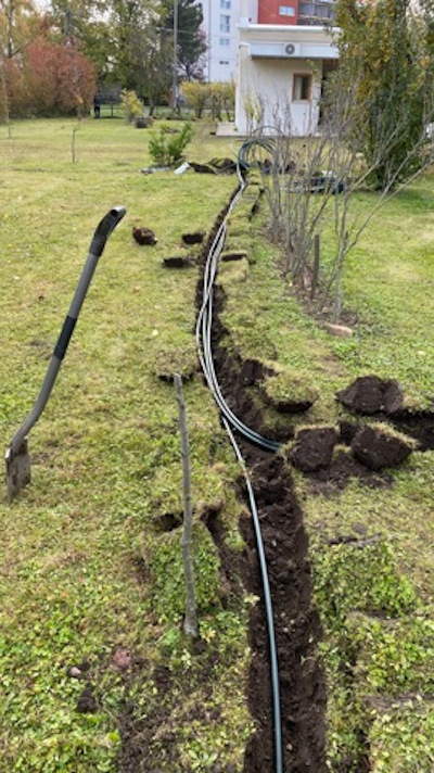 Ha az öntözőrendszer utólag kerül beépítésre, akkor kockákban felszedjük a gyepet majd miután a rendszer a helyére került, a kockákat visszahelyezzük eredeti helyükre.